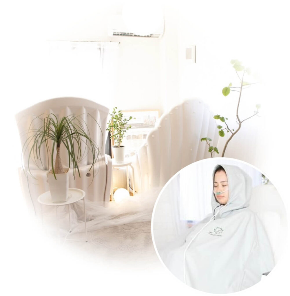 さらに、進化形よもぎ蒸し「ルルオン」と水素酸素吸入器を組み合わせることで、身体の巡りを内側から高め、発汗・代謝アップ・デトックス効果の実感がより深まります。